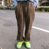 最近「テック系」という言葉を知りました。サロモンのスニーカーとか。そういうファッションをしている友だちから「シャカシャカしているパンツが〜」とかっていう話を聞いていいなと思っていました。そんなとき、インスタの広告で出てきたブランドが気になって見ていたらこのパンツを見つけました。最初は黒でワイドで引きずりそうな長い裾のパンツが欲しくてそのサイトを開いたけど、今日のパンツも見つけて両方買いました。このパンツは厚みがないので気温が高いときも気になりません。生地が「素直」だなと思います。壁とかに擦れてついた汚れも払えば取れるし、摩擦でテカったりしないし、汚れがあまり気にならないところがいいです。他には絵の具で汚れたジーンズとか、UNIQLO(ユニクロ)の緑とベージュのチノパンは長く着ていて愛着があります。あまりかっこよくない、気負わないファッションをしたいときも結構あります。でも今日とか昨日は展示で人にたくさん会うのでかっこいい格好がしたくて。昨日はもう一つの黒いワイドパンツをはいていました。昨日の方がかっこよかったかも...。リュックについている時計については、忘れ物しやすいので、特にいらないものでも必要になるかもと思ってつけています。