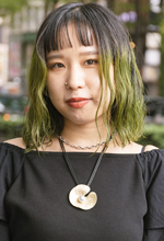 A 美容院に髪色を変えに来ました。金色から黄緑にしました。