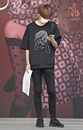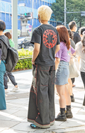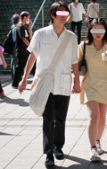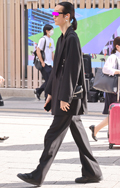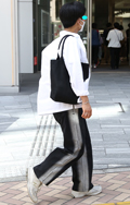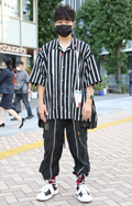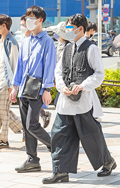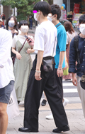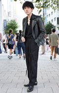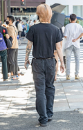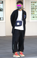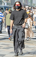男性が着用する色の黒いパンツすべて。素材は問わない。地模様があったり、墨黒など、素材によって若干黒のニュアンスが異なって見えるものも含む。クロップドパンツも含む。
