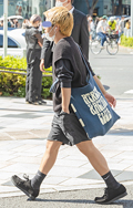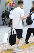 渋谷パルコ2階のショップ「2G」のショッパーを持った男性。整...