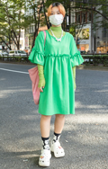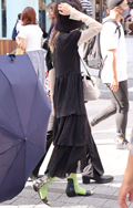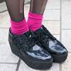 ソックスの上から網タイツをレイヤードするという新感覚の着こな...