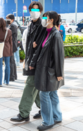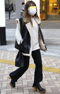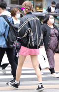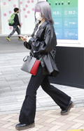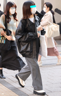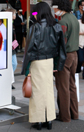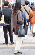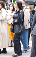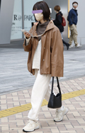 ブラウンのレザーアウターも散見された。白パンツも昨年同様じわ...