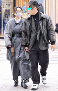 オーバーサイズのレザーのテーラードジャケットがお揃いだったカ...