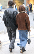 レザーブルゾンとスエードジャケットのファッショナブルな男女2...