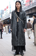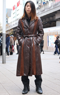 ステンカラーコートもレザー素材だとより重厚なムードに。メッセ...