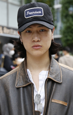 レザージャケットは、先輩がタンスの中にしまいっぱなしにしていたものをもらいました。このジャンバーの表情は、バイクを乗ってできるものとは違っていて興味を持ちました。21歳の自分がこんな服を着ることで自身の服に対するアティテュードを示せると思いました。自分がやっているのは「ファッション」ではないと思っています。昔はモテるために、いわゆるモテファッションのようなものをしていた時期もあったけれど、今は服以外の分野でもただ自分の好きなものを追求するだけ。ジーンズを育てるのが好きです。