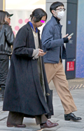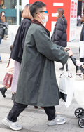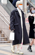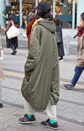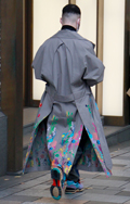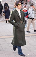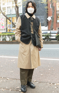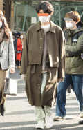 ■ズームアップアイテム定義ひざ下丈の羽織るアウターを着用している男性すべて。色や柄、素材などは問わない。