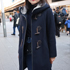 おしゃれ用のダッフルコートがずっと欲しくて。フードの裏のファーが取り外し可能。暖かいのでマフラーがいりません。ウールの目が詰まったものが欲しくて、パイピングがよくて買いました。きれい系でもカジュアルでも合います。他にコートはロングダウン、ショートダウン、チェスターコート、レザージャケット、トレンチとかを持っています。デニムのときはきれいすぎるコートだと浮いちゃうから今日はこのダッフルコートを合わせました。