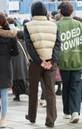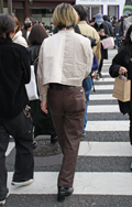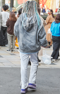 色が白いスニーカーを履いた男女すべて。アクセントでライン類やワンポイントなどが付いていても、ベースカラーが白(アッパー全体の3分の2以上の面積が白)であれば含む。