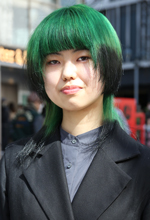 福岡のサロンnessで高校卒業以降、黒→紫→青→緑の流れで髪色を変えています。自分の感覚で色を決めていて、ヘアトリートメントでのケアは欠かさずしています。緑が一番気に入っていて、今までで最長の期間。その時々の好きなキャラやアニメで色は決めているかも