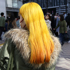 黄色とオレンジが好きです。以前は黒髪だったんですけれど、高校を卒業したので。宇都宮の「パーク」という美容室に昨日行ってきました。美容師さんにはインスタで見つけた写真を見せてオーダーしました。3万円でした。ブリーチケアのオイルをつけて乾かします。髪色を変えて気分が楽しくなりました。今までは黒髪だったので服装は派手だったけど、黄色にしたのでこれからは服は抑えた方がいいかなと思ったりしています。