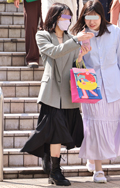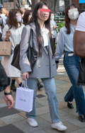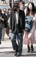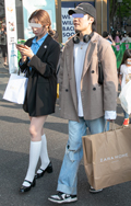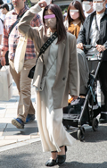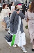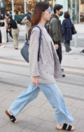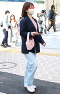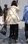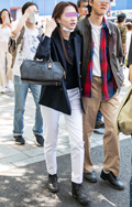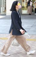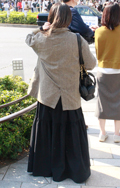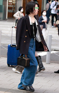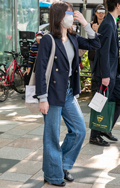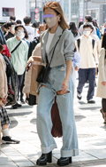 女性にはジャケット+デニムパンツのスタイルが非常に多かった。...