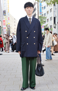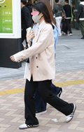 ベージュのダブルブレストジャケットも人気だった。先月白スニー...