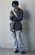 ジャケットにペンキデニムの組み合わせが、90sのヘルムートラ...
