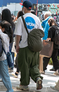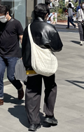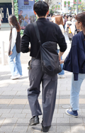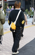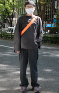 全身テック系でカメラマン風の男性も同系素材の大きなクロスボデ...