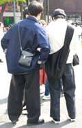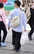 右の男性のように服と一体化して見えるデザインのバッグが増えて...
