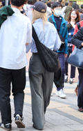大ぶりなバッグを差し色感覚で取り入れるコーディネートも見られ...