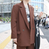 A 好きなブランドが出していたからというのと、カジュアルでもフォーマルでも着れるものを探していたので。カチッとしすぎないオーバー感がいいなと思って選びました。フォーマルと言っても、ご飯会とかちょっとオシャレしたいときに気軽に着ていけるようなものが欲しくて。オケージョンとかでもドレスの上に羽織れたらいいなと思って探していました。他にも古着でダブルブレストのジャケットは持っています。色味はシンプルな黒とか薄いベージュです。シングルのジャケットは持っていないです。女性らしいというよりもどちらかというとメンズライクなものが好きで、ダブルブレストもメンズっぽい印象がある気がするので、そういうので選んでいたのかなと思います。