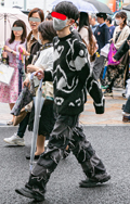 一部がバンダナ柄の生地に切り替わったものなど、再構築ジーンズ...
