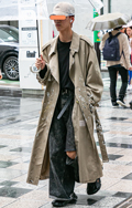 ペンキの飛んだトレンチコートや膝がクラッシュしたワイドジーン...
