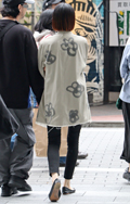 ショールを羽織ったようにも見えるデニムとニットを組み合わせた...