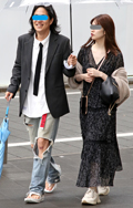 所々に穴が開いたグランジテイストのボーダーニット。彼もロン毛...
