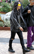 バンドT×ダメージデニム×黒ブーツというロックテイスト強めの...