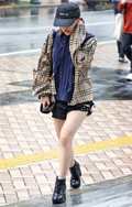 太もも部分にダメージが入った大胆なショートパンツ。潔い脚出し...