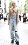 ほつれたり破けたりしたダメージ加工ニットも散見された。こちら...