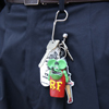 おもちゃのような小ぶりのヘッドホンをアクセサリー代わりに装着...