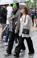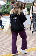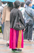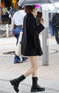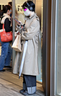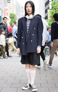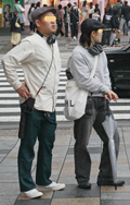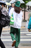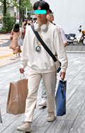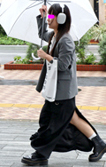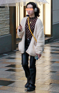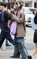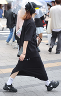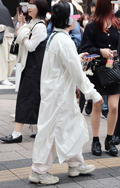 ヘッドホン含む全身白でコーディネートした女性も見られた。スカ...