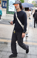 男性には定番の黒のヘッドホンが主流。強めの黒コーディネートに...