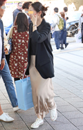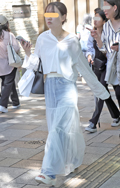 久しぶりにデニムのロングスカートも散見された渋谷地点。マルケ...