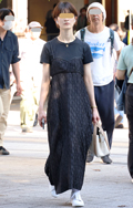 ミニマムな印象の黒ワンピ—スも多かった。透け感のあるシアー素...