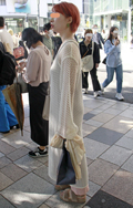 モノトーンファッションにハイトーンカラーヘアが際立つ。ロング...