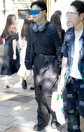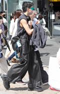 ファッショナブルな全身黒の男女ペアがしばしば見られた新宿地点...