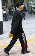 キャップやソックスまで徹底的に黒で統一したコーディネートがス...