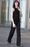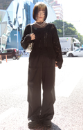 ボリュームのあるワイドパンツ+ブーツをオールブラック&タンク...