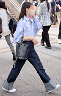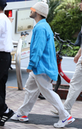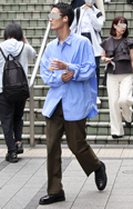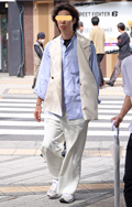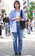 モノトーン+ブルーシャツのスタイルが急増。大きめサイズをラフ...