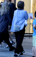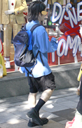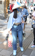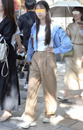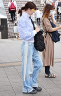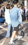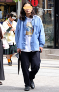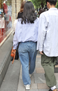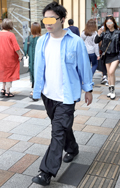 ブルーシャツの2人組。実際に原宿ではカップルや親子など、お揃...