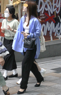 モードコンサバ系の女性に散見されたシャツワンピース。爽やかな...