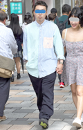 ペイントされた笠を被る団体に度々遭遇した。シャツのたすき掛け...