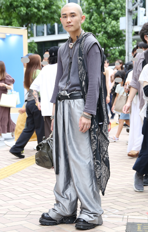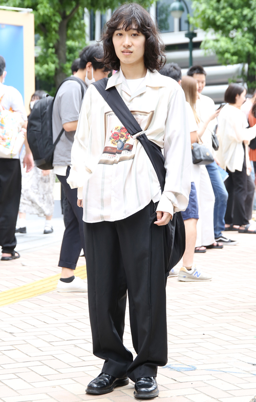 ワタリが広めで、腰から膝、裾まで身体との空間があり余裕のあるパンツすべて。素材やデザインは問わない。