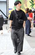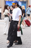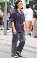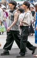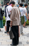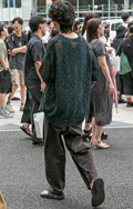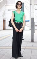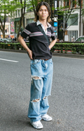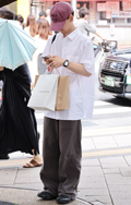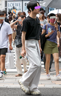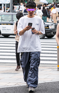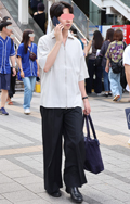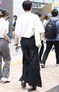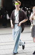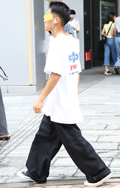 ワタリが広めで、腰から膝、裾まで身体との空間があり余裕のあるパンツすべて。素材やデザインは問わない。