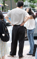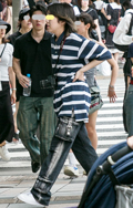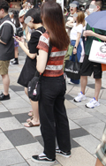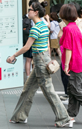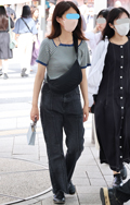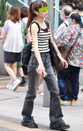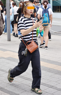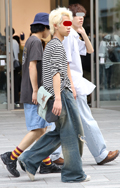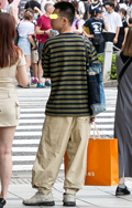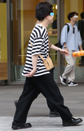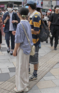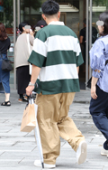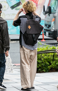 ボーダー柄トップス+チノパンの組み合わせもしばしば見られた。...