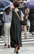 ミドリフ丈のチビTシャツをオーバーオールでアクティブな印象に...