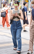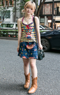 昨夏ブレイクした超ショート丈のインナー+羽織ものというバラン...