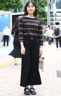 ボーダー柄はトップスだけでなく一部ボトムスにも波及。スリット...
