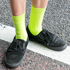 パーマに合うかなと思うスタイリングです。オールブラックでもいいけどそれだけだと寂しくて、蛍光色の黄色を合わせました。ソックスはファミリーマートのもので、結構気に入ってます。靴もローファーと迷いましたが、フィーリングでタッセルの付いてるスニーカーを選びました。フォーマルなジャケットに、バランスを取るためにショーツを合わせました。