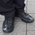 黒のパンツは5年ほど前に買ったものですが、当時はテーパードのものやストライプのスラックスしか持っていなくて、スニーカーとの合わせがあまりよくなかったので購入しました。その頃はダッドスニーカーを履いていて、それに合わせるためにレトロなシルエットのものを探していました。当時のコレクションを参考にしていました。スキニーやテーパードは古いと感じていたので、ひざ下までゆとりがあるシルエットは新鮮でした。